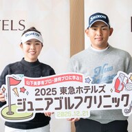 …しい!? 12月21日、東急ホテルズ&リゾーツとスポンサー契約を結ぶ山下美夢有と山下勝将が、神奈川県横浜市の「東急あざみ野ゴルフガーデン」にて、「2…